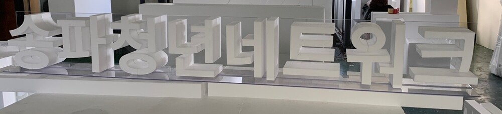 송파청년네트워크 행사 무대 안내 입식형 스티로폼 국문 스카시 조형물