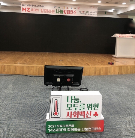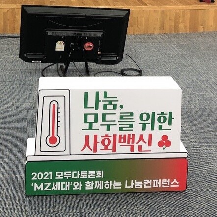 사랑의열매 행사용 실내 무대 배치 입식형 스티로폼 슬로건 조형물
