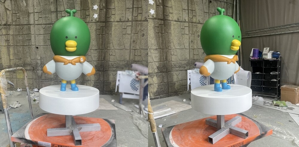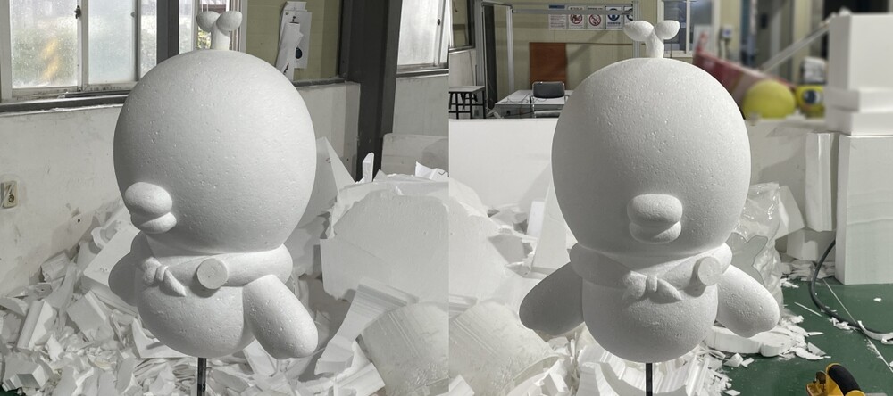 FRP 조형물 제작 첫 번째 단계인 원형 조각을 먼저 진행해 주었습니다. 야외 조형물은 특성상 내부가 비어있고 외부는 매우 단단하기 때문에 제작 이후 수정이 불가능합니다. 그렇기 때문에 새 조형물의 형태가 확정되는 원형 조각 단계에서 최대한 디자인 시안과 동일한 형태로 제작해 주는 것이 중요합니다. 원형 조각이 마무리된 조형물은 클라이언트의 검수 과정을 거치고 규산을 도포해 주었습니다.