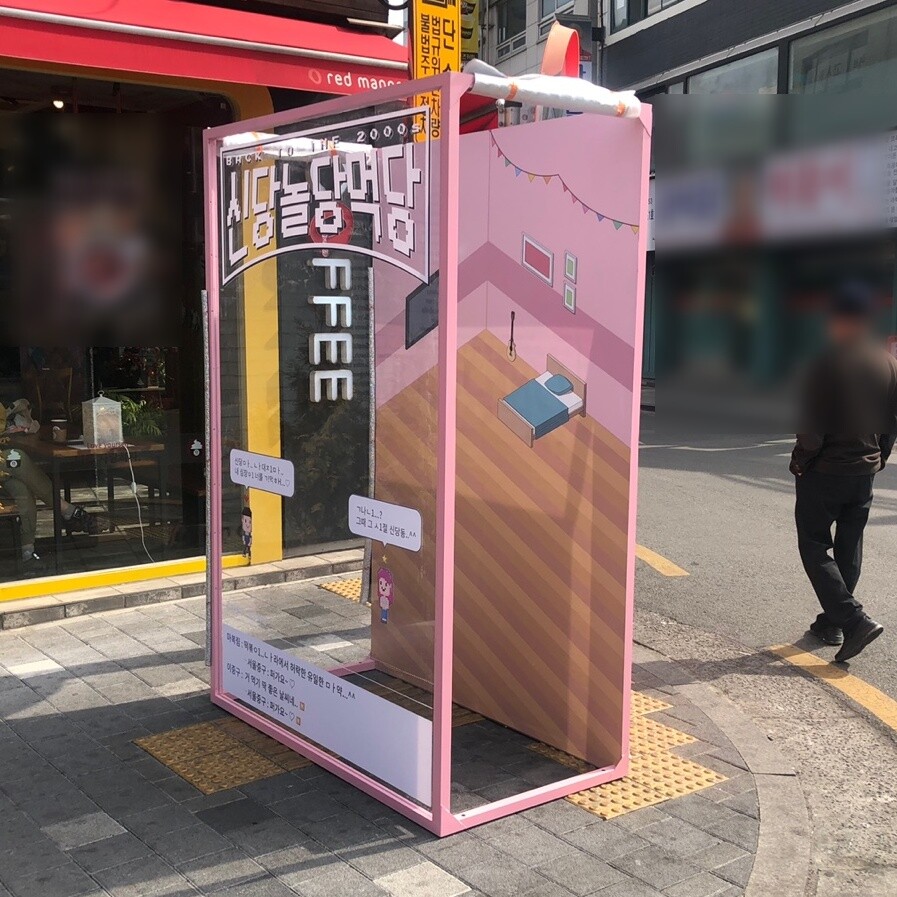 신당동 떡볶이타운 실외 단기 행사 참여형 금속 포토부스 대여형 조형물