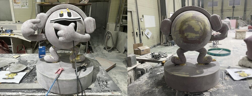 확정된 디자인 시안을 바탕으로 조형물의 원형 조각 작업을 진행해 주었습니다. FRP 조형물의 특성상 원형 조각을 기준으로 최종 형태가 결정되기 때문에 디자인 시안과 동일한 형태와 비율로 세심하게 작업을 진행해 드리고 있습니다. 제작된 원형 조각은 사진을 통해 클라이언트에게 최종 검수를 요청하며 검수가 완료되면 다음 작업을 위해 조형물 표면 전체에 규산을 도포해 주었습니다.