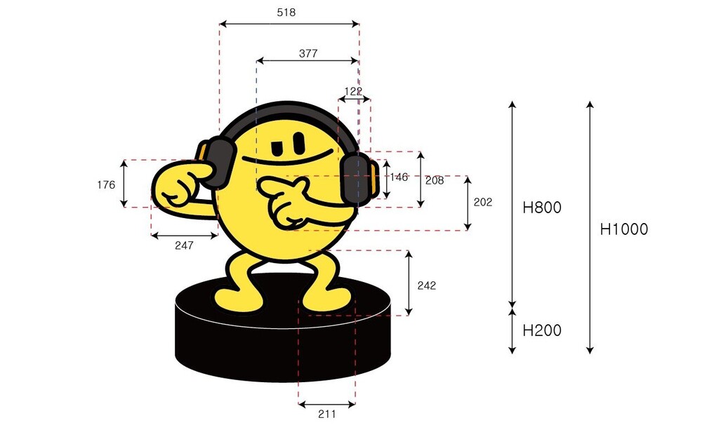 먼저 캐릭터 조형물은 제작하기 위해 디자인 시안 작업을 진행해 주었습니다. 클라이언트께서 기본적인 디자인 시안을 제공해 주셔서 이를 바탕으로 간단한 수정 작업과 제작 방식을 논의하였습니다. 이번 조형물은 사람들이 많이 오가는 공간에 배치가 될 예정이라 내구성과 내식성이 뛰어난 FRP 소재를 추천해 드렸습니다. 또한 홍보 조형물 부피 대비 바닥에 닿는 면적이 적어 안정적으로 서 있을 수 있도록 하단 기단을 추가해 주었습니다.