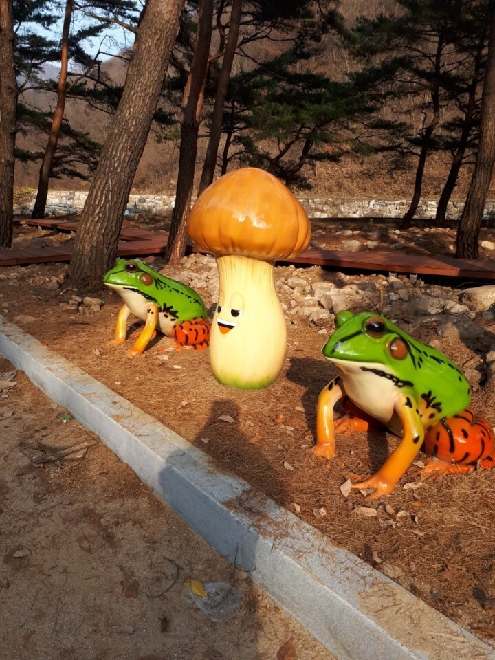 제천시 오토캠핑장 실외 홍보 FRP 개구리 버섯 포토존 조형물