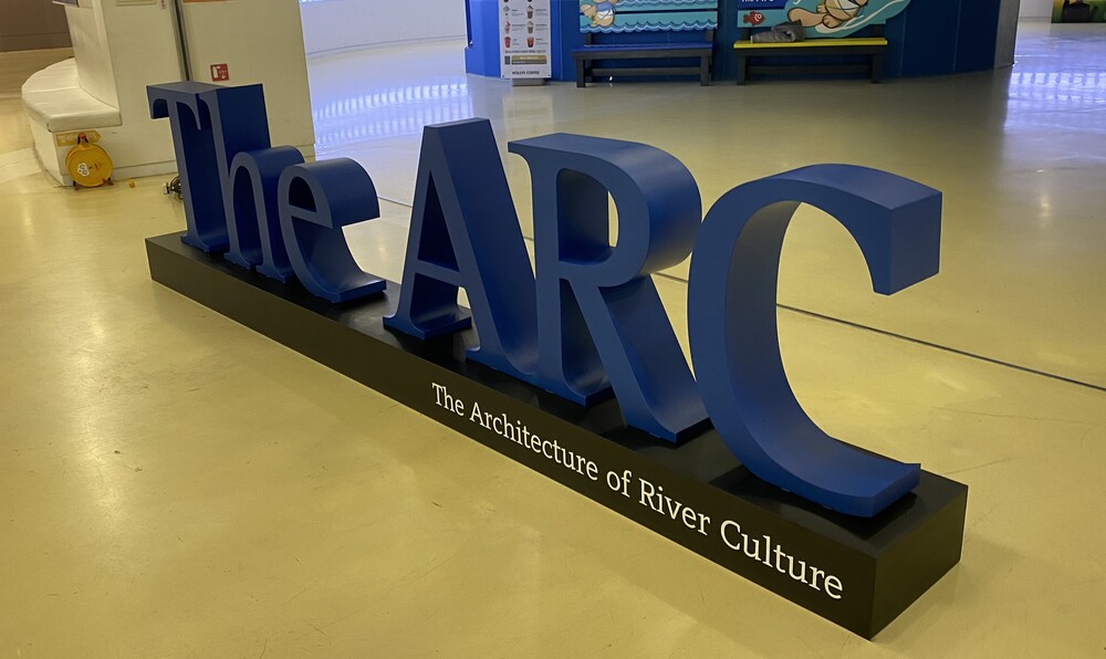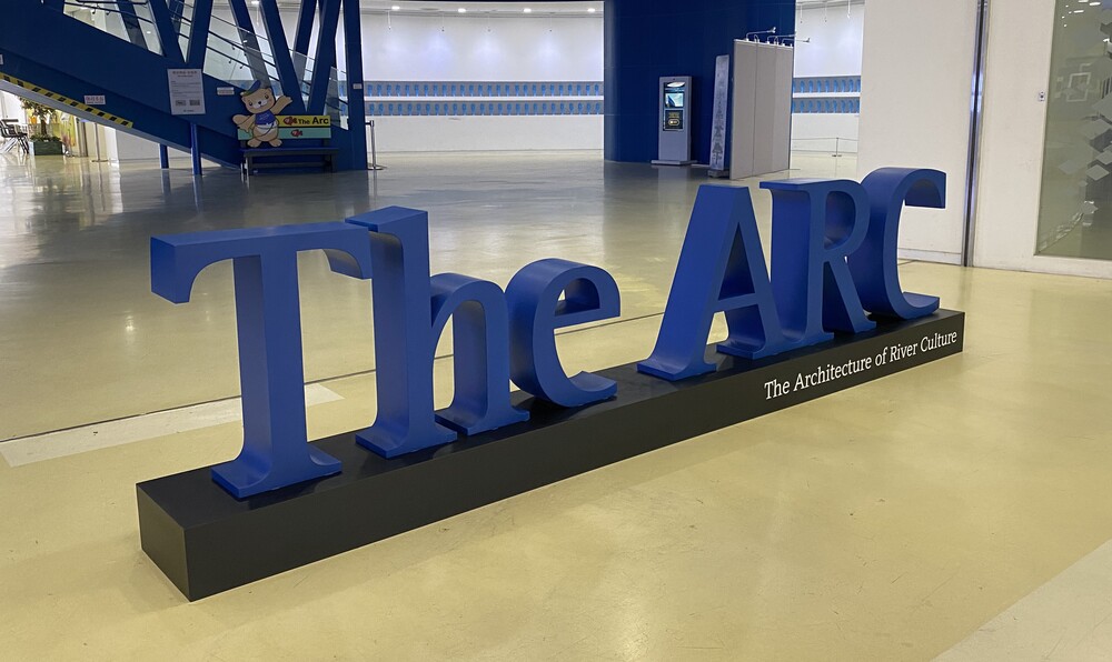 디아크문화관 홍보용 브랜드로고 실내 로비 입식형 금속 글자 조형물