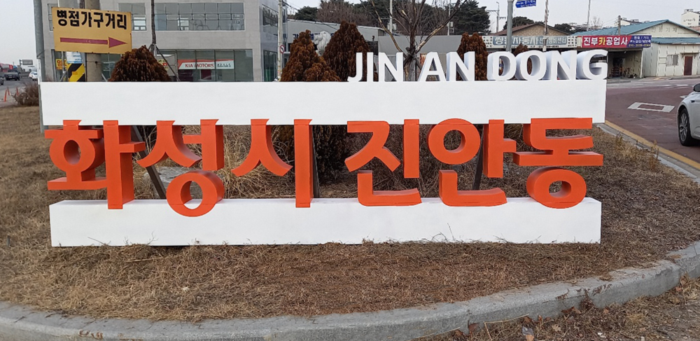 화성시 진안동 입구 실외 대형 금속 글자 조형물