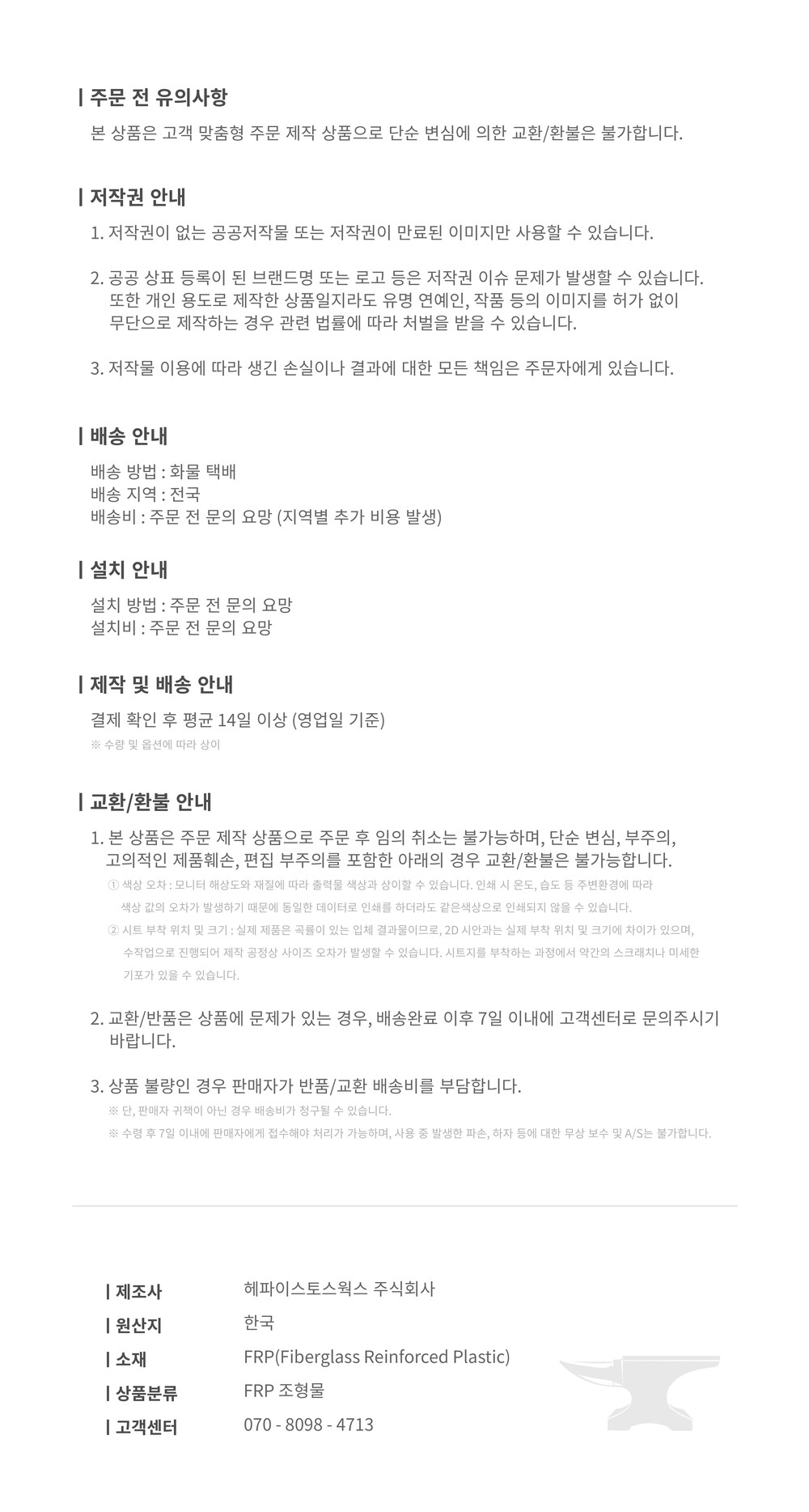 · 배송비 : 50,000원 (제주, 도서지역 별도 확인필요)