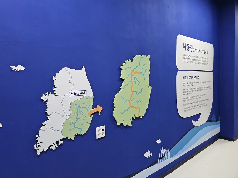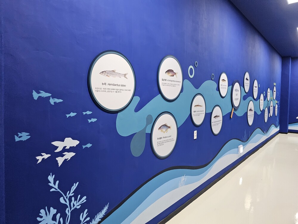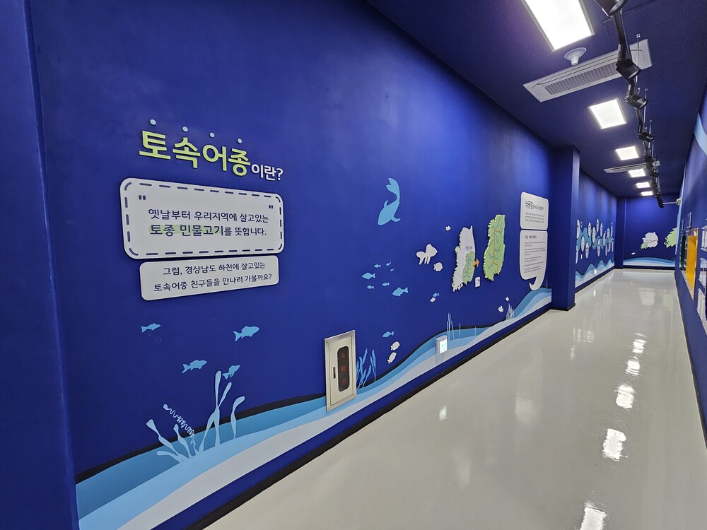 밀양 민물고기 고무 아크릴 글자 실내 전시 공간 조성