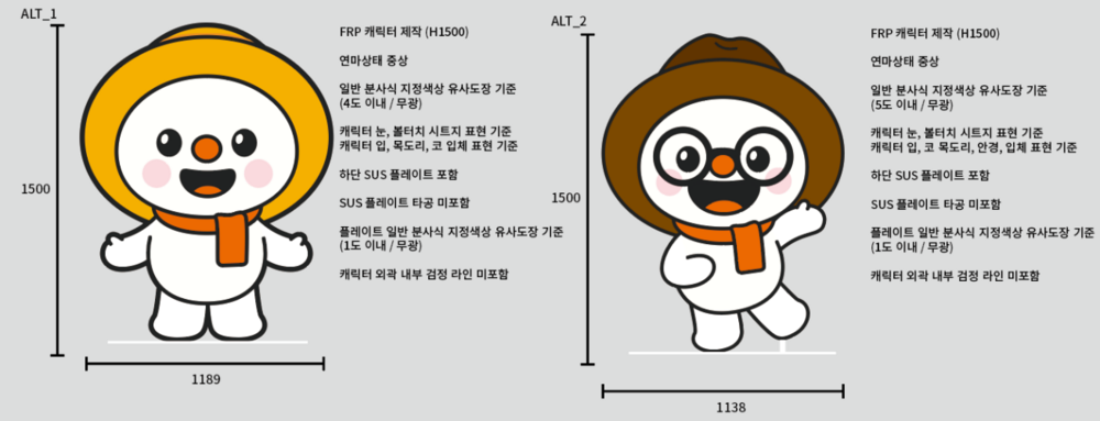 강원도 평창군의 마스코트 ‘눈동이’를 FRP 소재로 제작한 맞춤형 지자체 조형물을 야외 공간에 설치했습니다. 무대나 광장 등 설치 장소에서 캐릭터가 한눈에 들어올 수 있도록, 형태와 비율, 디테일을 세심하게 설계했습니다. 또한 제작 전 단계에서 구조적 안정성과 시각적 표현 가능성을 충분히 검토하여, 야외 환경에서도 안전하고 튼튼하게 유지될 수 있는 디자인으로 구현했습니다.