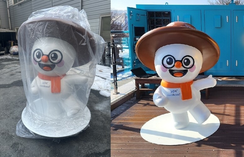 오늘은 강원도 평창군을 상징하는 마스코트 ‘눈동이’를 FRP 소재로 제작한 야외 조형물을 소개해 드립니다.