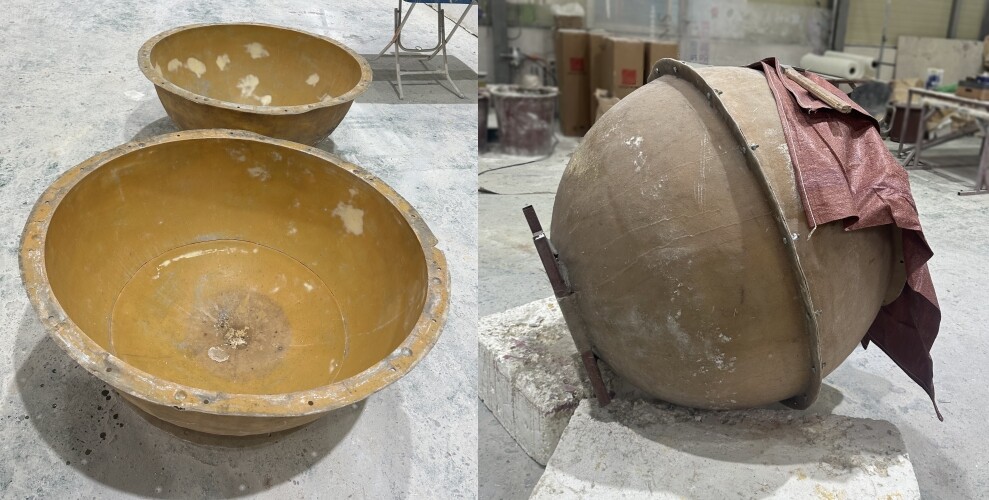 입자가 단단하고 형태 표현력이 우수한 조각용 스티로폼을 사용하여 원형 조각을 진행해 주었습니다. 보름달 조형물은 조명을 추가하여 빛이 밖으로 투과되어야 하기 때문에 반투명 FRP 소재로 진행해 주었습니다. 조형물의 둥근 원의 부분을 표현해 주기 위해서 컴퓨터 조각기를 사용하여 정교하게 제작을 해주었습니다. 원형 조각이 마무리된 조형물에는 규산을 발라 다음 작업을 준비해 주었습니다.