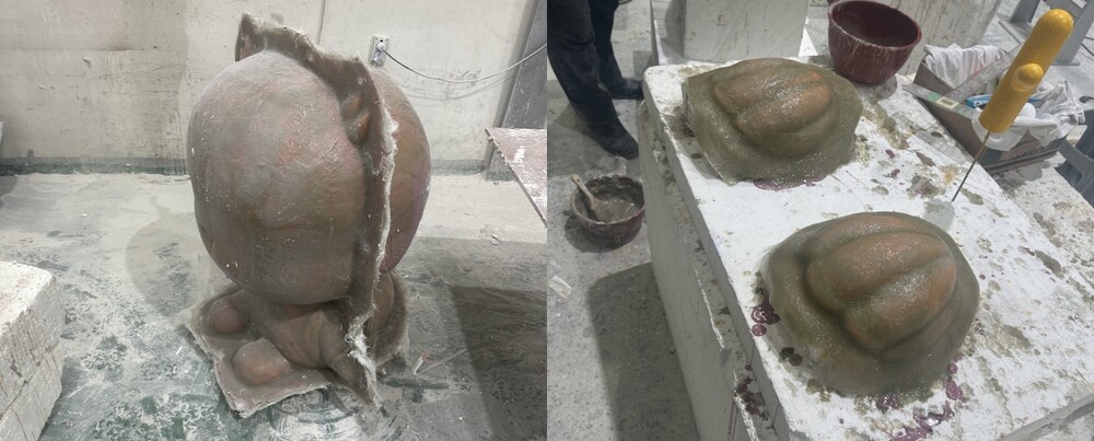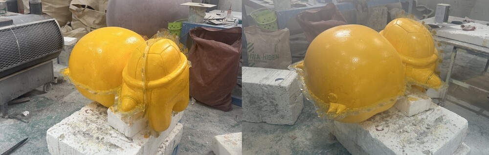 규산이 건조된 경기대학교 조형물은 몰드 제작을 진행해 주었습니다. 기룡이의 뿔과 소개의 디테일한 부분들은 깔끔하게 제작하기 위해 분리하여 별도로 몰드 제작을 해주었습니다. 몰드 제작이 완료된 마스코트 조형물은 내부 표면을 다듬어 성형체 적층을 진행해 주었습니다.