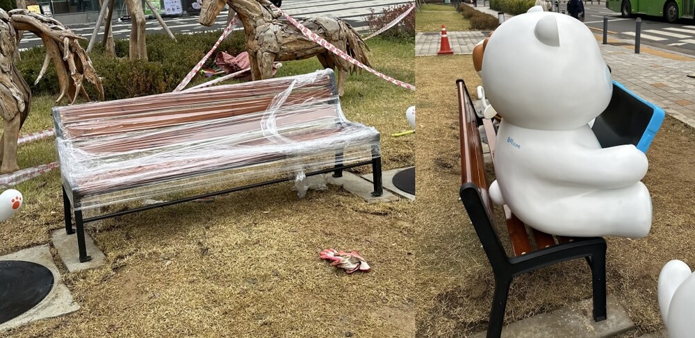 듬이 조형물은 천재교육 신사옥 앞 에 벤치에 앉아있는 포토존 조형물로 설치가 되었습니다.