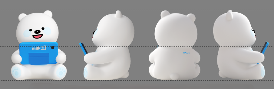 천재교육 밀크T 마스코트중 깜찍한 웃음이 매력적인 흰색 곰으로, 학생들에게 친근한게 다가갈수있는 조형물로 제작을 의뢰해주셨서