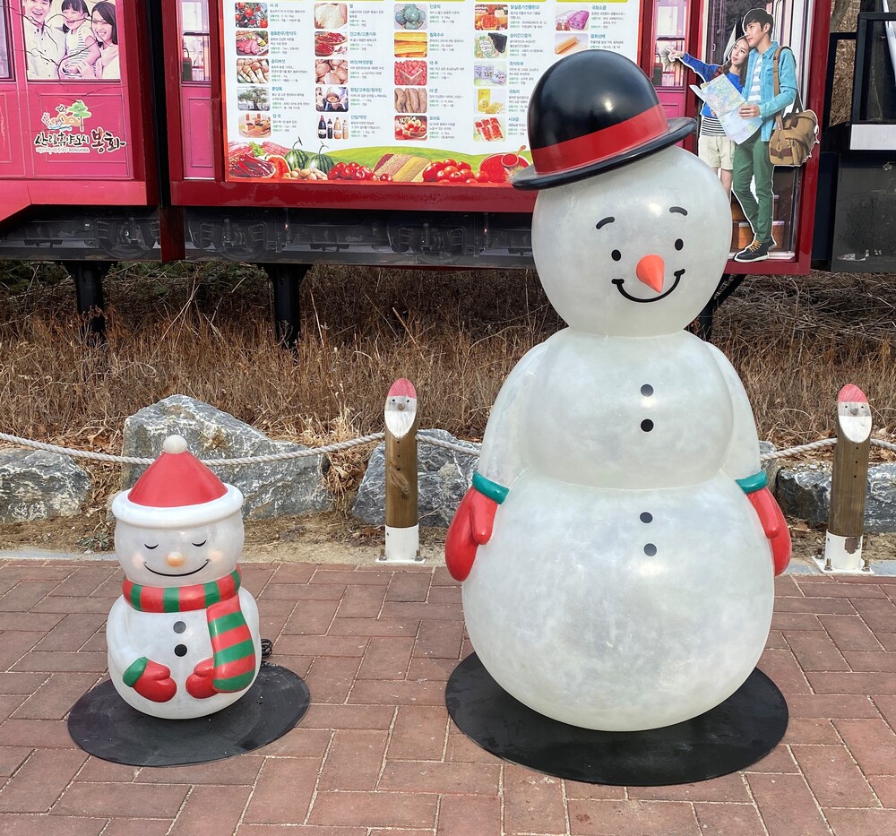 분천산타마을 빨간 눈사람 캐릭터 FRP 조명 포토존 조형물
