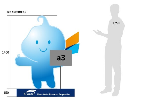 한국수자원공사 조형물은 클라이언트께서 디자인 시안을 별도로 제공해 주셔서 저희는 조형물의 비율, 크기 등의 작업을 진행해 주었습니다. 홍보 조형물의 높이는 H1400mm로 부피 대비 바닥에 닿는 면적이 적어 하단 FRP 기단을 추가해 주었습니다. 기관, 기업의 마스코트 같은 경우 보통 정체성을 지키기 위해 규격화된 가이드라인 정해져 있기 때문에 최대한 기존 색상을 유지해 주기 위해 팬톤 컬러칩을 사용하여 안내해 드리고 있습니다.