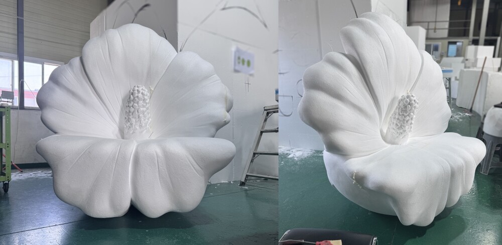 디자인 시안 작업이 완성되면 조형물 제작 첫 번째 단계인 원형 조각을 진행해 주었습니다. 조형물의 형태는 원형 조각 단계에서 결정이 되기 때문에 전체 과정 중 제일 중요한 단계입니다. 이번 조형물은 무궁화를 벤치형으로 제작해야 되고 실제 꽃 모양과 최대한 동일하게 제작해야 하기 때문에 난이도가 높은 작업이지만 저희 전문 조각가님의 다수의 조형물 제작 노하우와 경험을 바탕으로 디테일한 부분들까지 섬세하게 제작해 드리고 있습니다.