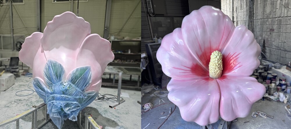 무궁화 조형물은 야외에 설치 될 예정이라 내구성과 내식성이 좋은 FRP 소재로 제작해 주었습니다.