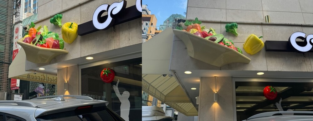 오늘 소개해 드릴 조형물은 매장 간판에 설치된 샐러드 FRP 조형물입니다.