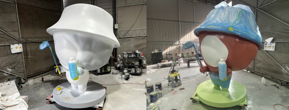 우선 FRP 조형물의 디자인 시안 작업을 진행해 주었습니다. 이번 디자인 시안은 클라이언트께서 전달해 주셔서 저희는 캐릭터 조형물의 소재, 제작 방식, 비율 등을 작업해 드렸습니다. 조형물 부피 대비 바닥에 닿는 면적이 적어 하단에 FRP 기단을 추가해 주었습니다. 하단 기단은 FRP뿐만 아니라 금속 플레이트로도 제작이 가능하며 조형물의 크기가 낮아 크기를 높이거나 추가하고 싶으신 문구나 글자가 있으시면 추가로 제작이 가능합니다.