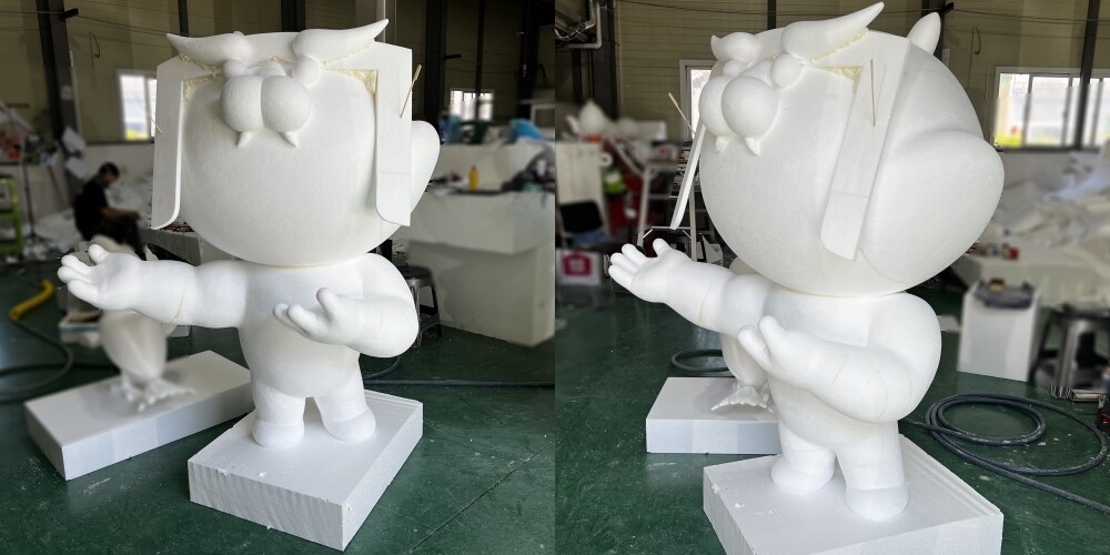 디자인 시안 작업이 완료된 입식형 조형물은 원형 조각에 들어가 주었습니다. FRP 조형물의 형태는 원형 조각 단계에서 결정이 되기 때문에 FRP 조형물이 어떻게 제작이 되는지 사전에 미리 확인이 가능합니다. 캐릭터 조형물은 제작 이후 수정이 불가능하기 때문에 원형 조각 단계에서 최대한 디자인 시안과 동일한 형태로 제작해 주는 것이 중요합니다.