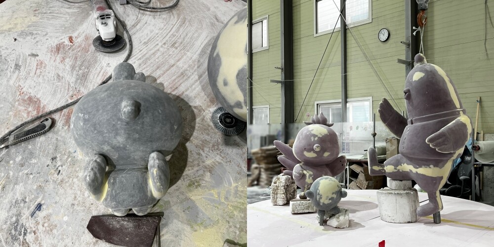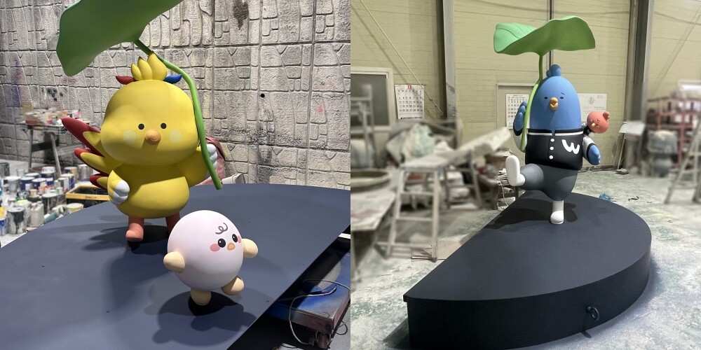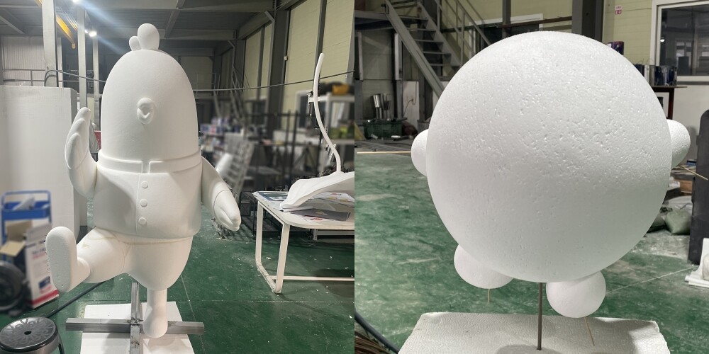 이번 원광대학교 조형물의 경우 클라이언트께서 디자인 시안을 전달해 주셔서 저희는 야외 조형물의 크기, 하단 기단의 유, 무, 소재 등을 안내해 드렸습니다. 특히 이번 캐릭터 조형물은 호수 위에 설치가 되어야 하기 때문에 하단에 FRP 원형 기단을 추가해 주었으며 플로트를 삽입하여 물 위에 뜰 수 있도록 작업을 진행해 주었습니다.