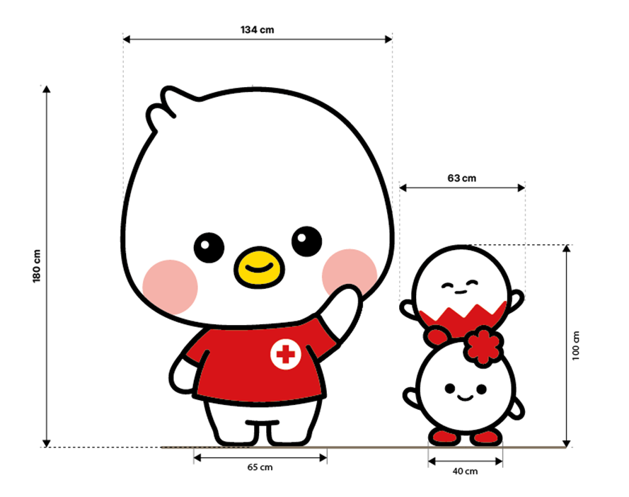 이렇게 제작이 완료된 조형물은 꼼꼼하게 포장하여 납품 장소로 운송을 진행해 주었습니다. 안전하게 운송된 조형물은 먼저 위치를 잡아주고 보도블록이 파손되지 않도록 칼브럭을 사용하여 바닥과 단단하게 고정시켜 주고 클라이언트의 최종 검수를 끝으로 대한적십자사 '쎄호' 캐릭터 야외 FRP 포토존 조형물 프로젝트를 마무리해 주었습니다.
