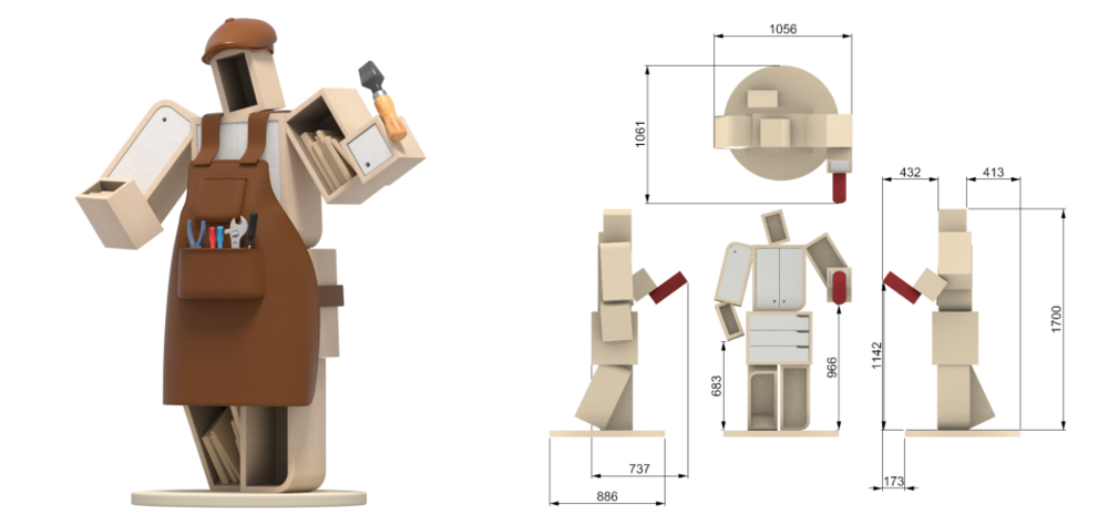전달해 주신 3D 시안을 바탕으로 세부적인 디자인 시안 작업을 진행해 주었습니다. 1700mm의 높이로 전시 조형물이 안정적으로 서 있을 수 있도록 하단 원형 FRP 기단을 추가해 주었습니다. 이번 사례와 같이 디자인 시안을 따로 가지고 계신 분들도 있으시지만 디자인 시안이 없으신 분들을 위해 저희 헤파이스토스웍스에서는 홍보 조형물 관련 사용 목적, 기간, 용도 등 관련 레퍼런스를 전달해 주시면 별도 비용 추가와 함께 디자인 시안 작업을 진행해 드리고 있습니다.