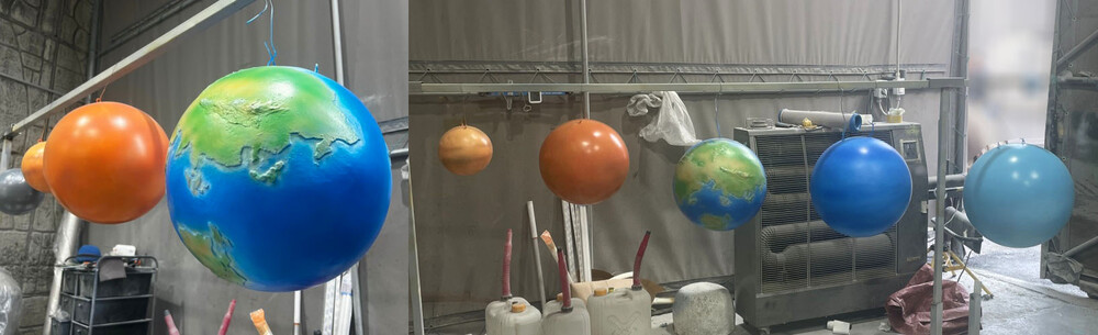 헤파이스토스웍스는 오랜 경험을 통해 숙련된 조각가와 클라이언트의 디자인을 정확히 구현할 수 있는 디자이너가 함께 작업에 참여하여, 원래 시안에 최대한 가깝게 실내 FRP 조형물을 완성해 드립니다. 이번 행성 조형물 프로젝트에서도 클라이언트로부터 명확한 시안을 받아 신속하고 정확하게 제작을 진행할 수 있었습니다. 특히, 해당 태양계 행성 모형은 실내 천장에 설치될 예정으로, 무게와 안전성을 충분히 고려한 상태에서 제작되었습니다.