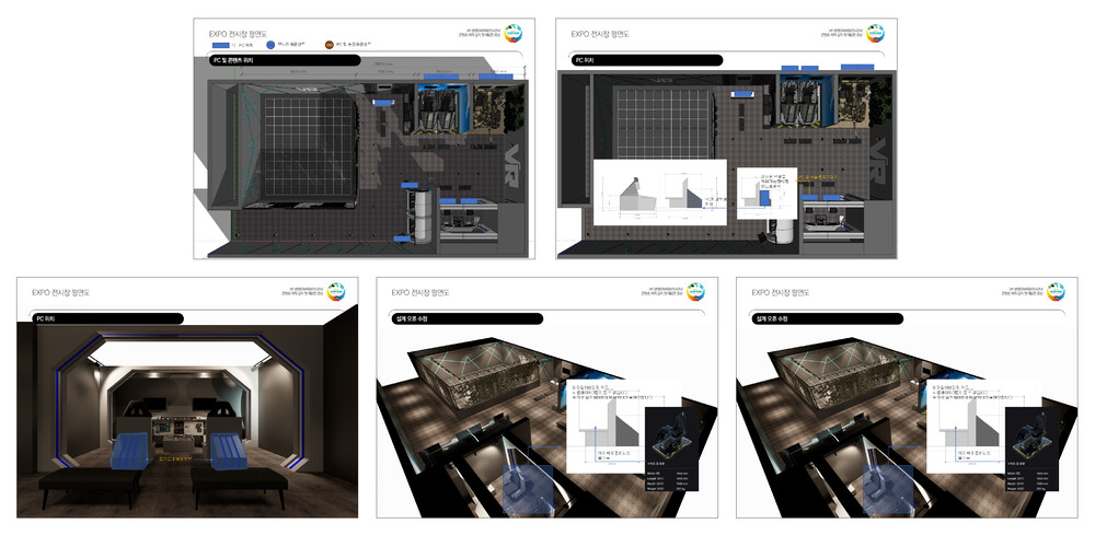 저희 헤파이스토스웍스는 제안서 작업부터 설계 도면 작업, 제작, 운송, 설치까지 모두 원스톱으로 진행해드리고 있습니다. 이번 전시 조형물은 소재, 디자인 색상, 크기 등 엑스포 전시장에 설치되어야 하는 만큼 사전에 현장을 방문하여 건물 도면, 설치 위치등을 확인해 논의하여 설계도면을 제작하였습니다.