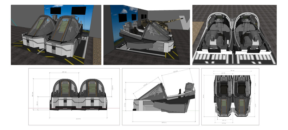 하우징 조형물은 실제 전투기 모형과 동일한 크기로 구현이 되어야해서 사전에 조형물 내부에 들어가 기기의 사이즈를 정밀하게 측정하는 작업을 진행하였습니다. 측정된 치수를 바탕으로 3D작업과 설계도면을 제작하여 전투기 조형물의 예상 모습과 앞으로 진행될 사항들을 계획하였습니다. 합판 조형물의 조종석 구간의 상부 콕핏의 경우 단순화 및 무게 절감을 위해 관련 부분 소재에 관하여 클라이언트와 우선적으로 협의를 진행한 후 예산에 맞게 구현될 수 있도록 제작을 진행하였습니다. 전투기 조형물이 단기 행사에 사용된다는 점과 저렴한 예산으로 제작을 진행할 수 있도록 MDF 대형 합판을 사용하여 전투기 조형물을 제작하기로 결정하였습니다.