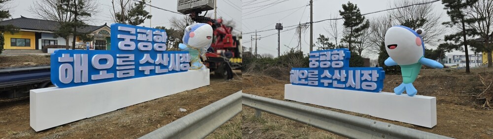 궁평항 해오름 수산시장 입구 안내 FRP 조형물