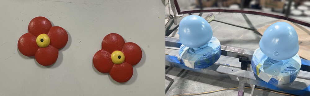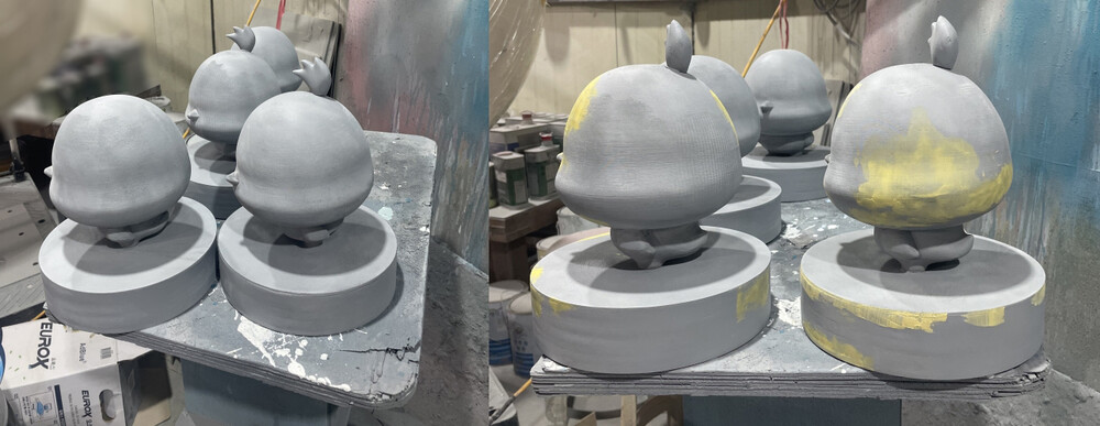 캐릭터 조형물의 원형 조각이 마무리가 되면 몰드를 제작을 해주었습니다. 똑디 조형물은 같은 크기, 형태로 여러 개 제작이 들어가야 했기 때문에 다회용 몰드를 사용하여 제작을 진행해 주었습니다. 티마커 조형물에는 하단에 아크릴 소재를 사용해 기단을 추가하여 바닥에 설치가 잘 될 수 있도록 진행해 주었습니다. 캐릭터 조형물의 꽃 부분은 깔끔하게 제작하기 위해서 분할하여 제작을 진행하였습니다.