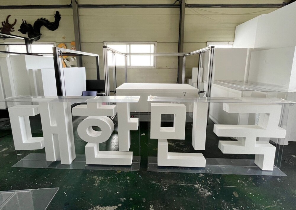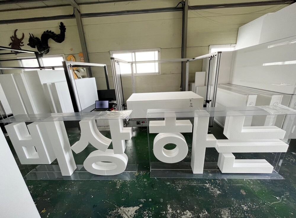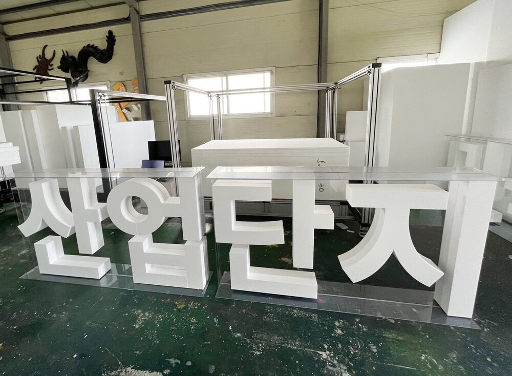 입식 아크릴 구조물 결합 스티로폼 스카시 글자 조형물