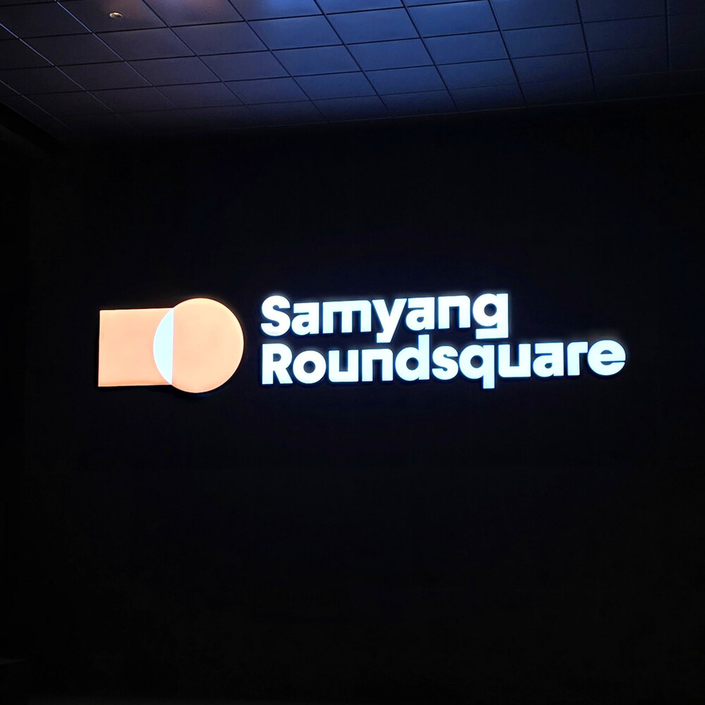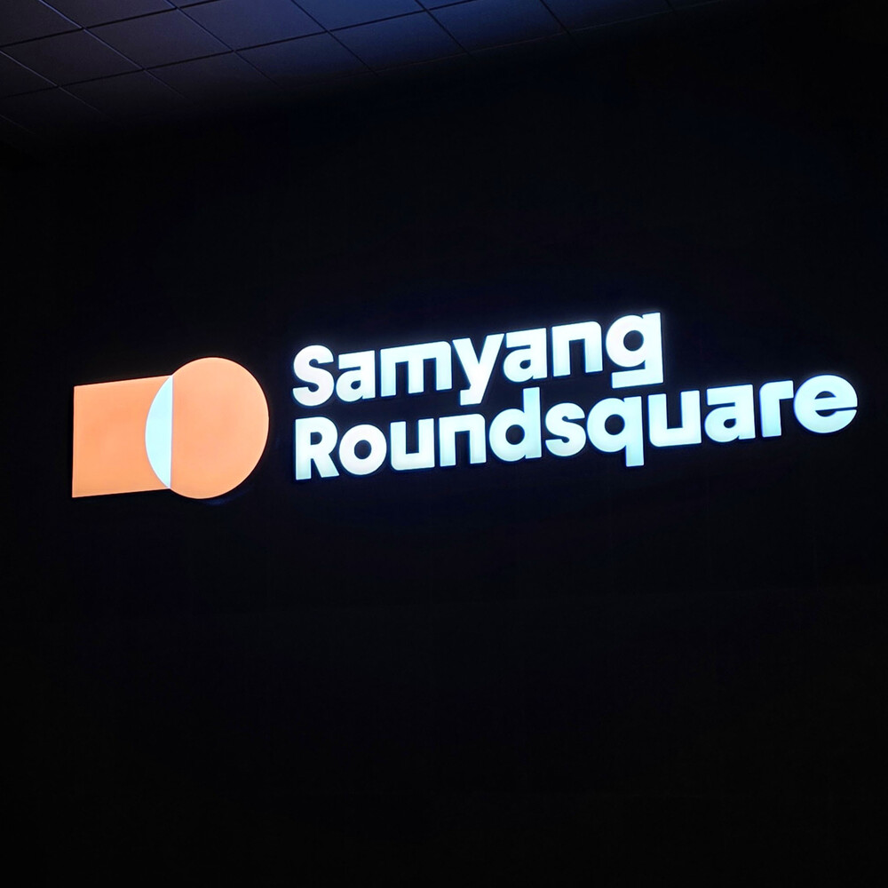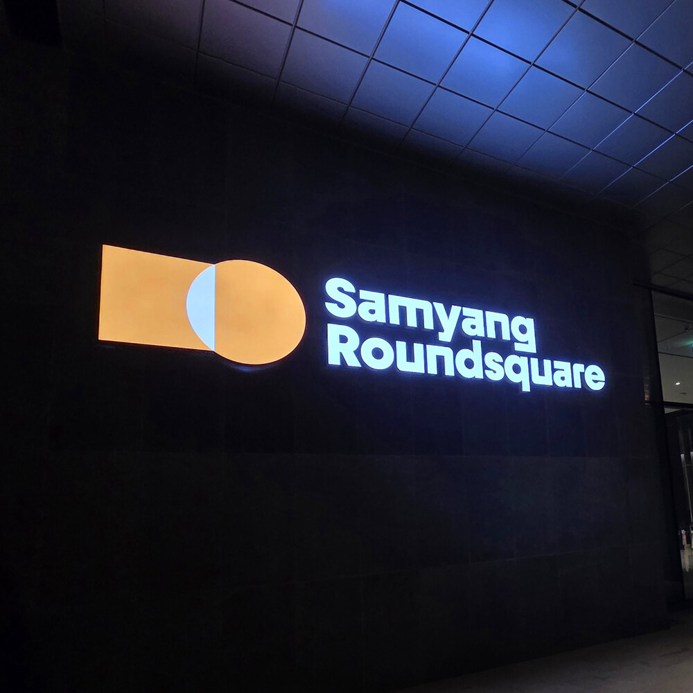 대기업 신사옥 1층 매인 입구 금속 간판 조형물