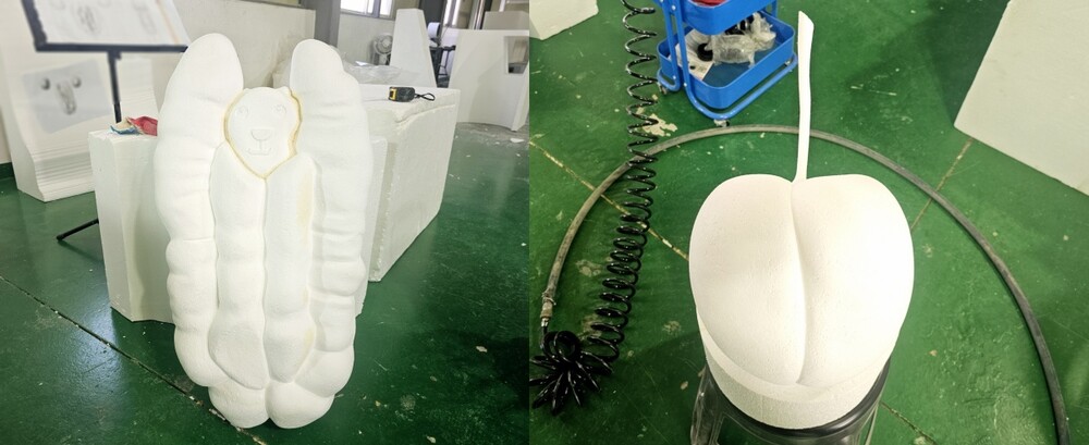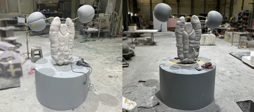 이번에 의뢰받은 작가님의 작업은 실내 공간 전시에 적합한 입체 구조물로 본격적인 제작에 앞서 스티로폼을 활용한 원형 조형 공정을 통해 전체적인 형태를 구현하였으며, 이때의 스케일과 윤곽은 최종 결과물과 거의 일치하게 설계됩니다. 스티로폼 원형 조각 단계는 수정을 유연하게 할 수 있는 시점으로 작업 중 촬영한 사진 자료를 클라이언트께 전달드려 실제 모형의 형태에 대한 의견을 나누고 조율할 수 있도록 안내드리고 있습니다.