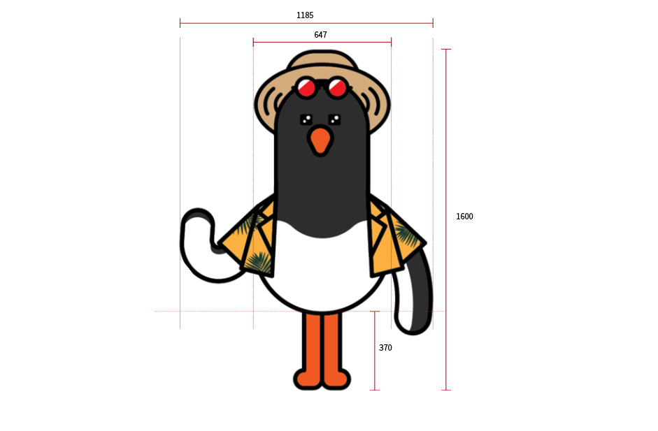 조형물 제작에 앞서, 먼저 디자인 시안을 검토하고 준비하는 과정을 거쳤습니다. 이번 프로젝트의 경우 클라이언트 측에서 기본 시안을 제공해주셔서 간단한 수정과 함께 제작 방향에 대한 협의를 진행했습니다. 해당 캐릭터 조형물은 전체 크기에 비해 바닥 면적이 좁은 구조이기 때문에 하단에 금속 플레이트를 부착하여 안정성과 균형감을 더하고, 시각적으로도 깔끔한 마감이 되도록 설계했습니다.