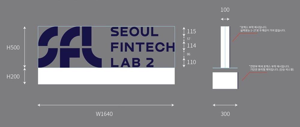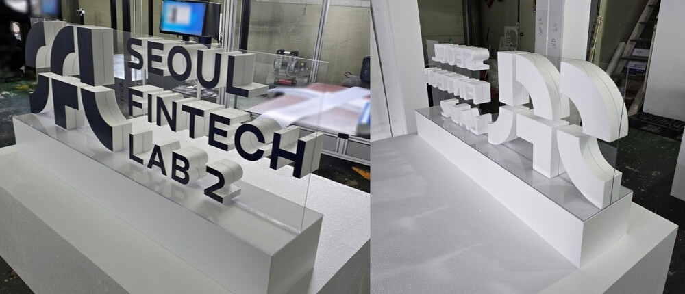 제2 서울 핀테크랩 로비에 설치될 조형물은 공간의 정체성과 분위기에 어울리도록, 간결하고 세련된 입체 스카시 형태로 기획되었습니다. 작업 초기에는 로비 내 주요 동선과 시각적 노출 빈도를 고려해, 조형물의 배치 위치와 크기를 설정하였으며, ‘SEOUL FINTECH LAB’ 문구를 중심으로 구성된 디자인은 개별 글자의 간격과 정렬, 레이아웃 균형까지 정밀하게 설계되었습니다.