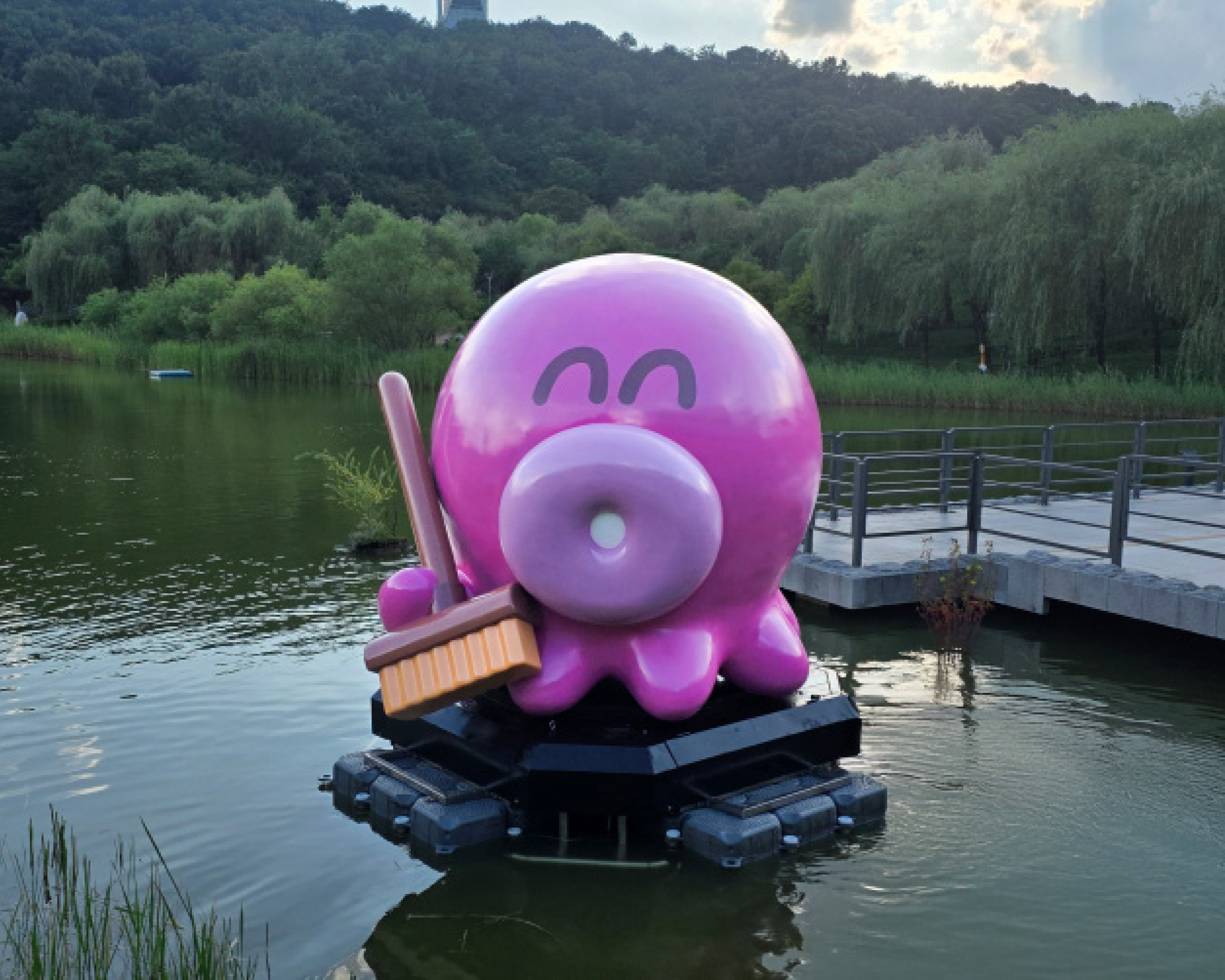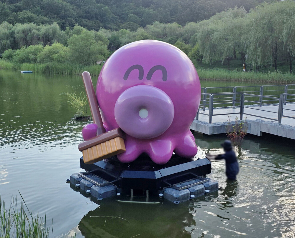 초대형 문어 캐릭터 모형 호수 설치 FRP 조형물