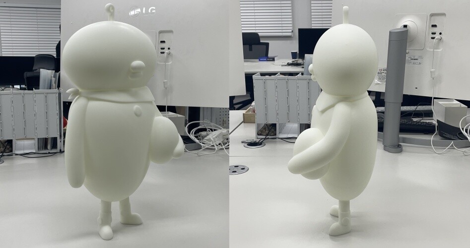이번 구로구청 조형물 제작에서는 3D 프린팅 기술을 활용하여 정밀한 소형 캐릭터 원형을 제작합니다. 기존의 수작업 조각 방식과 달리 디지털 데이터를 기반으로 제작되기 때문에 형태와 비율을 정확하게 구현할 수 있습니다. 이를 통해 구스 캐릭터의 둥근 볼륨감과 표정, 부드러운 곡선 형태를 보다 사실적으로 표현합니다. 또한 내부 강도를 확보하기 위해 출력 과정에서 적절한 적층 두께와 내부 구조를 설정합니다. 출력이 완료된 이후에는 표면의 결층을 최소화하기 위해 정밀한 연마 작업을 진행합니다. 이러한 과정을 통해 3D 모델링 데이터를 실제 조형물 형태로 정확하게 구현하며 조형물의 완성도를 높입니다.