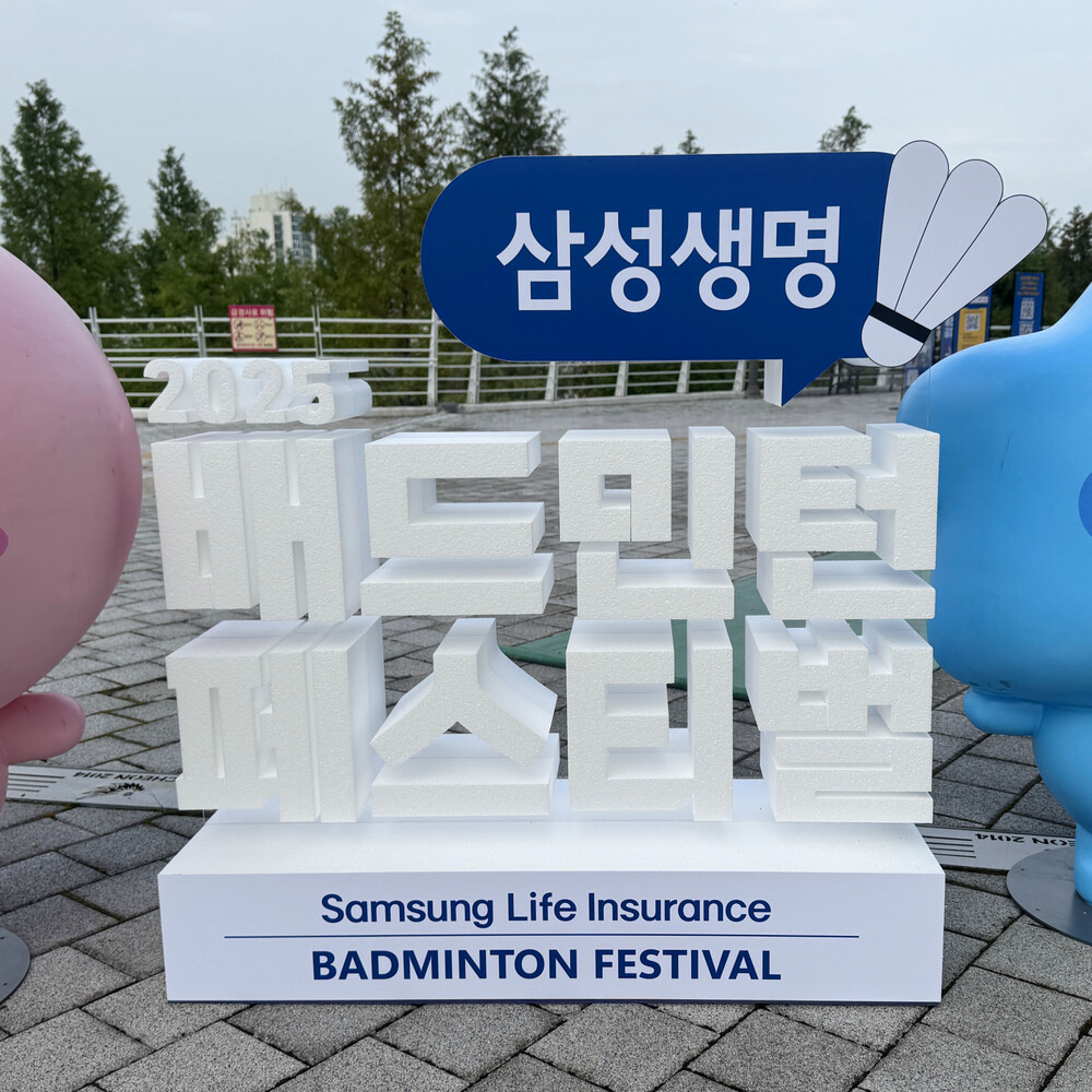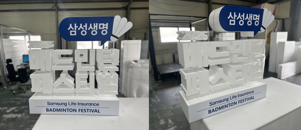 배드민턴페스티벌 글자 조형물은 행사 스카시 맞춤 시안을 바탕으로 컴퓨터 조각기를 활용해 정밀하게 재단되었습니다. 고밀도 조각용 스티로폼을 사용하여 직선 위주의 글자 형태를 정확하고 깔끔하게 구현하였으며, 모든 글자가 동일한 크기와 두께로 균일하게 절단되었습니다. 이 재단 과정은 조형물의 품질과 완성도를 결정짓는 핵심 단계로, 이후 마감과 설치 시 안정적인 형태를 유지할 수 있도록 정밀하게 진행되었습니다.
