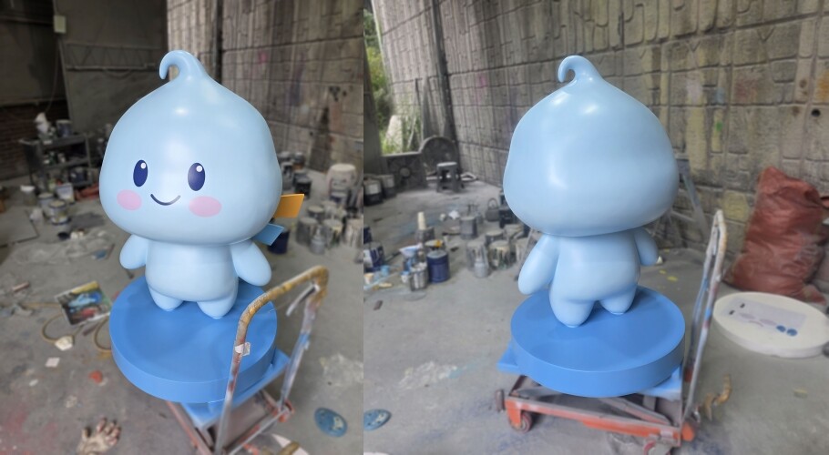 수자원공사 마스코트 방울이 조형물 제작에 앞서 우선 디자인 시안을 검토하고 보완 작업을 진행했습니다. 이번 프로젝트는 클라이언트 측에서 기본 시안을 제공해 주셔서, 조형 방식과 마감 소재 등에 대해 구체적인 협의를 거쳤습니다. FRP 소재를 활용한 입체 조형물은 공공기관 마스코트인 방울이의 밝고 친근한 이미지를 최대한 살릴 수 있도록 표면 질감과 색감 표현에 세심하게 신경 써 제작되었습니다.