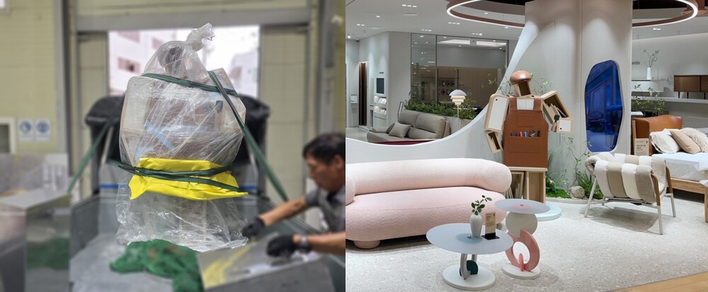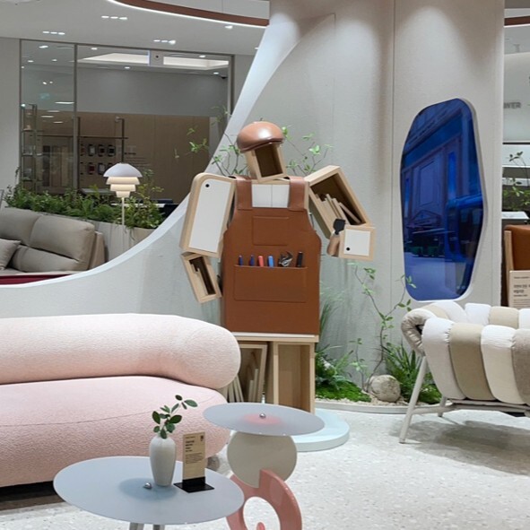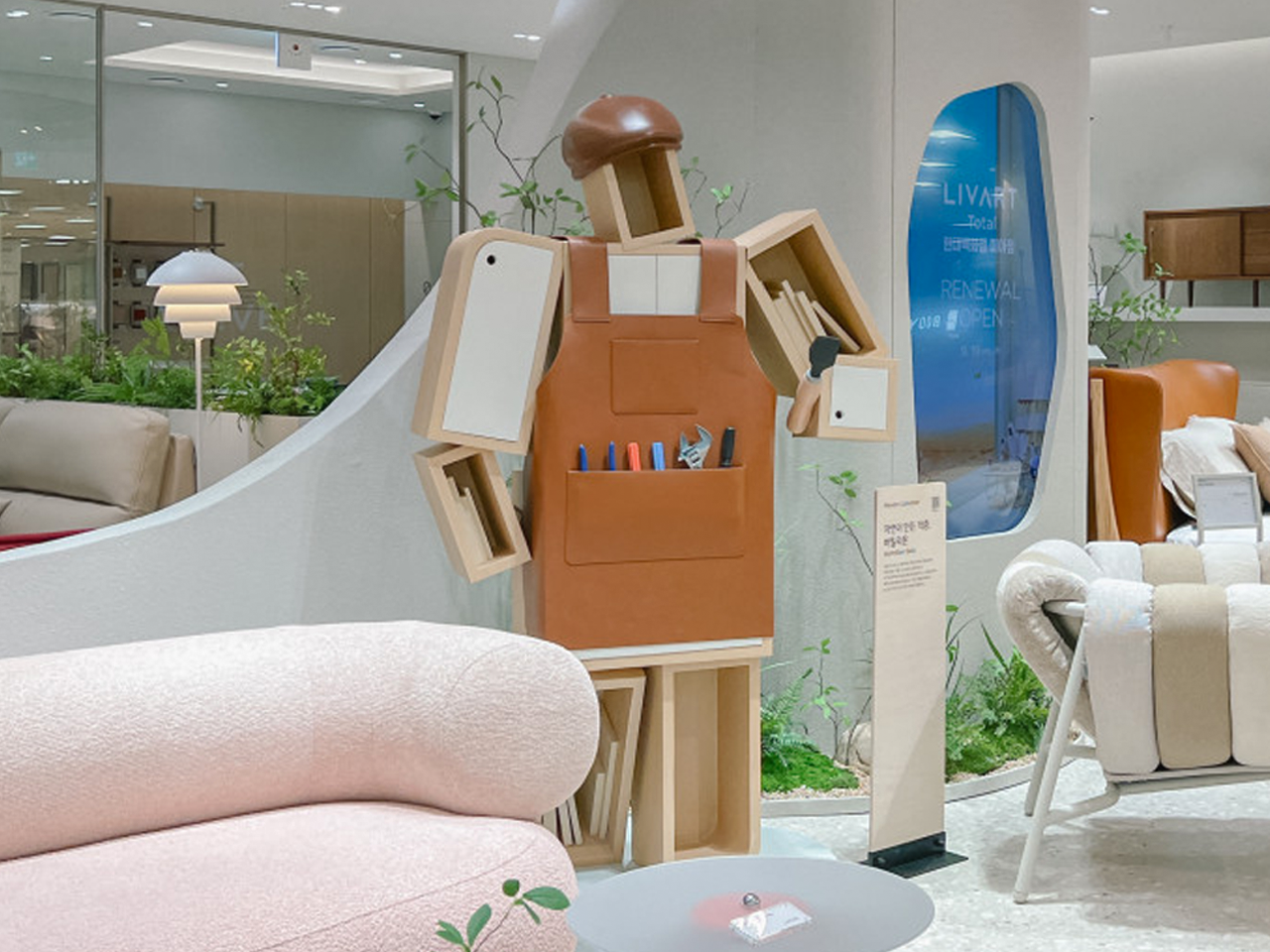 백화점 내 리바트 매장에는 방문객들의 시선을 사로잡는 특별한 현대리바트 조형물이 비치되어 있습니다.