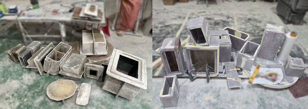 1) 원형 조각 및 몰드, 성형체 적층 작업