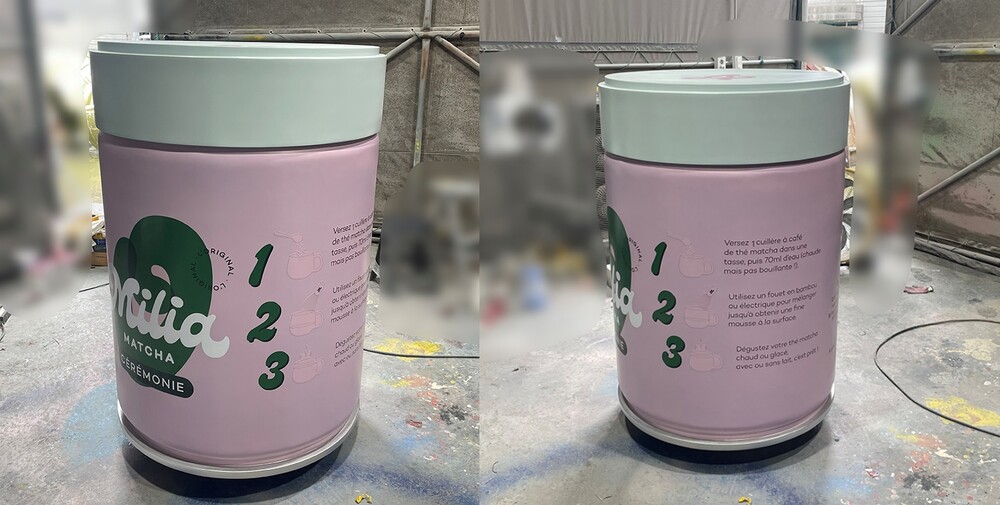 이번 프로젝트는 프랑스 파리에서 진행된 브랜드 팝업스토어 행사를 위해 제작된 대형 말차 캔 조형물입니다.