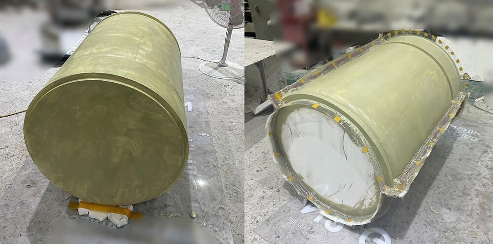 설계가 확정된 이후 본격적인 팝업스토어 조형물 원형 조각 작업이 진행되었습니다. 이번 대형 말차 캔 팝업스토어 조형물은 원기둥 구조로 이루어져 있어 제작이 쉽게 느껴질 수 있지만 미세한 오차만 발생해도 형태의 균형이 쉽게 무너질 수 있기 때문에 더욱 정밀한 작업이 필요했습니다. 스티로폼을 활용하여 설계 시안을 기반으로 기본 구조를 가공하고, 정확한 원형 비율을 구현했습니다. 특히 말차 캔 뚜껑과 몸체 사이에 존재하는 미세한 홈과 곡률을 그대로 재현하여 실제 제품과 동일한 실사화 팝업스토어 조형물 형태로 완성했습니다. 이후 FRP 포토존 조형 표면 샌딩 작업을 통해 스티로폼 특유의 거친 입자를 제거하고 매끄러운 상태로 다듬어 FRP 조형 몰드 및 성형체 작업 공정에 적합한 원형을 완성했습니다. 특히 해외 설치되는 말차 캔 대형 조형물이기 때문에 설치 이후의 안정성과 무게 배분을 고려하여 원형작업이 진행되었습니다.