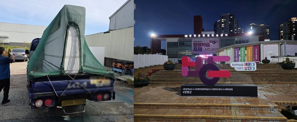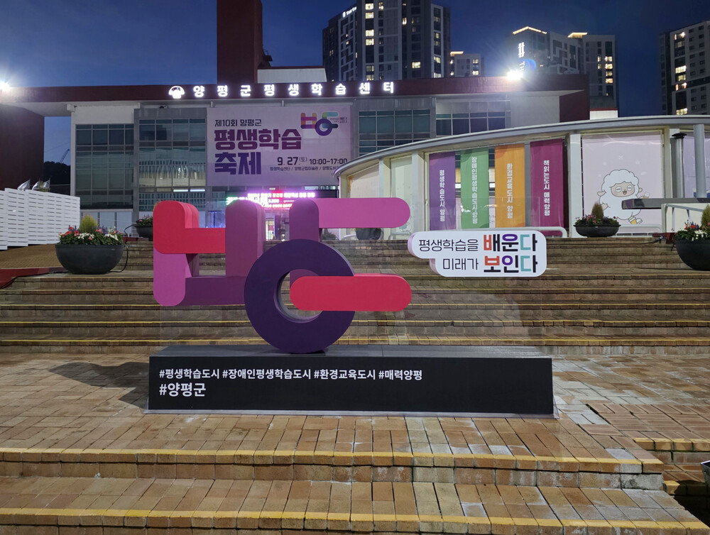 경기도 양평군에서 열린 제10회 평생학습축제의 야외 공간에 특별한 대형 포토존이 설치되었습니다.