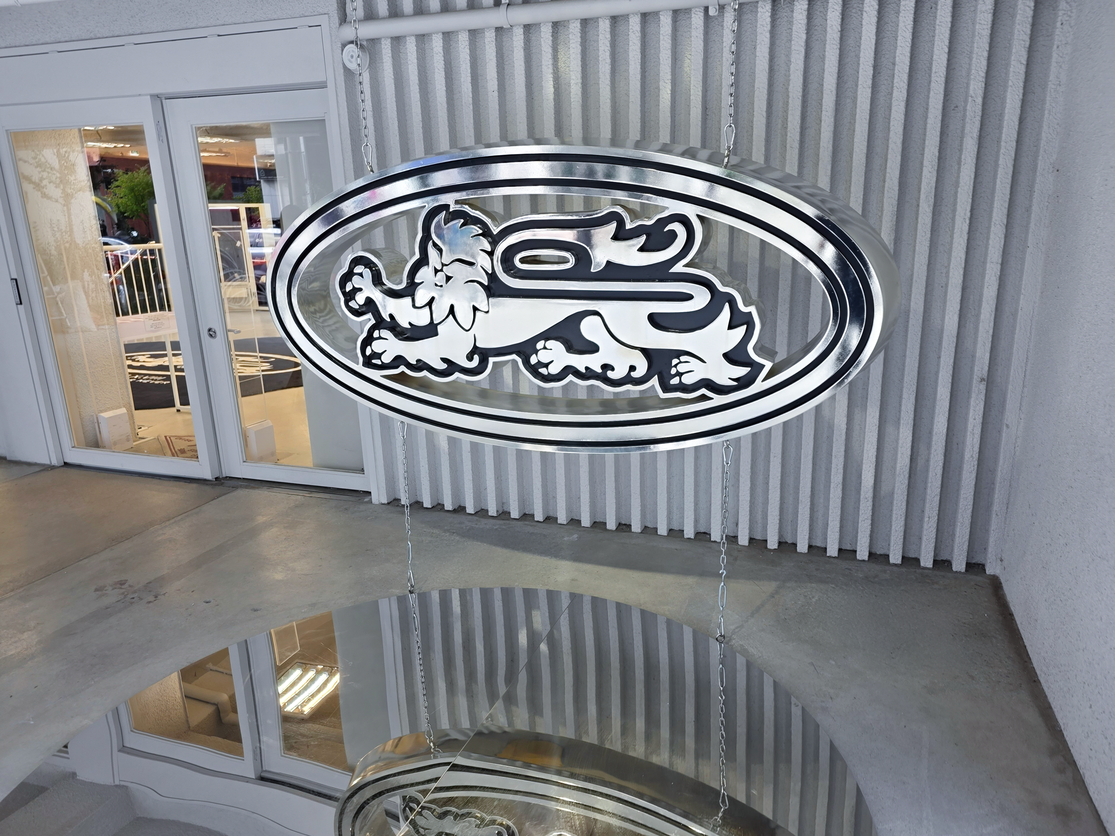 의류 매장 입구 대형 간판 크롬 로고 조형물