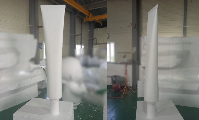 제품 도면과 실물을 기준으로 전체 비율과 크기를 정밀하게 설정하는 작업부터 시작합니다. 확대 제작 시 발생할 수 있는 형태 왜곡을 고려해 구조를 먼저 설계합니다. 조각용 스티로폼을 사용해 기본 형태를 잡고 점차 세부 라인을 조형합니다. 튜브 형태 특유의 곡선과 흐름을 자연스럽게 표현하는 데 집중합니다. 로고 위치와 제품 비율까지 실제 제품과 동일하게 구현합니다. 이후 공정의 완성도를 높이기 위해 원형 표면을 세밀하게 정리합니다.