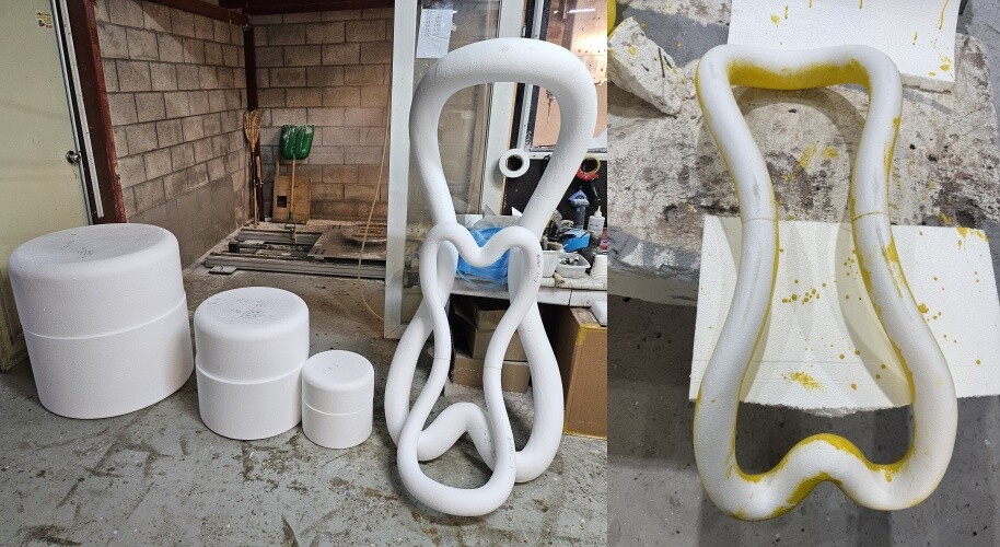 디자인 시안을 바탕으로 실제 입체 형태를 구현하기 위한 원형 조각 작업을 진행했습니다. 전체 조형은 유기적인 곡선이 많은 구조로, 비율과 흐름이 어긋나지 않도록 형태를 반복적으로 점검하며 작업했습니다. 상부 조형과 하부 베이스를 분리 제작해 각각의 균형과 안정성을 확보했습니다. 곡면이 많은 만큼 표면의 매끄러움을 살리는 데 집중해 조각 단계를 정리했습니다. 실제 설치 환경을 고려해 시야 높이와 각도에 따른 인상도 함께 검토했습니다. 이후 공정에서 수정이 최소화될 수 있도록 원형 단계에서 완성도를 최대한 끌어올렸습니다.