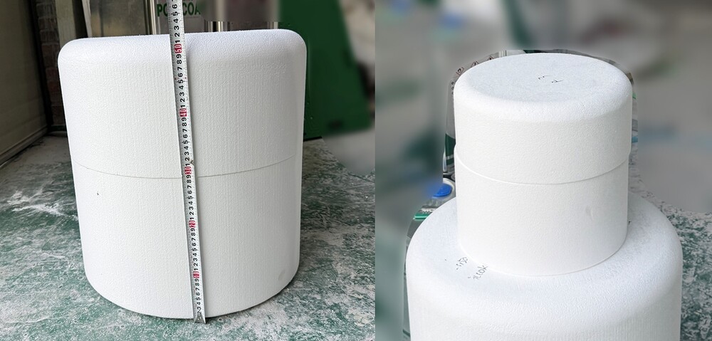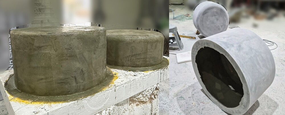 브랜드 조형물의 생명이라 할 수 있는 매끄러운 질감을 완벽히 구현하기 위해, 고밀도 스티로폼을 활용하여 정밀한 원형 조각 공정을 진행했습니다. 스티로폼은 섬세한 표현과 원활한 형태 변형이 가능한 최적의 소재로, 대형 스케일의 원형 작업 시 효율성과 정밀도를 동시에 확보하기에 매우 용이합니다. 이번 작업에서는 확정된 설계시안을 바탕으로 오차 없는 대칭형 구조 위에 연마 공정을 더했습니다. 이를 통해 FRP 조형물의 기초가 되는 원형 표면을 이후 몰드 및 성형체 제작 시에도 결함이 생기지 않도록 도자기처럼 매끄럽게 다듬었습니다. 원형 조각 단계에서 완성된 모형의 곡률과 질감은 최종 도색 품질을 결정짓는 핵심 요인이 되기에, 육안으로 식별하기 어려운 미세한 굴곡까지 완벽하게 잡아내어 브랜드 조형물의 미적 가치를 극대화하는 기초를 마련했습니다.